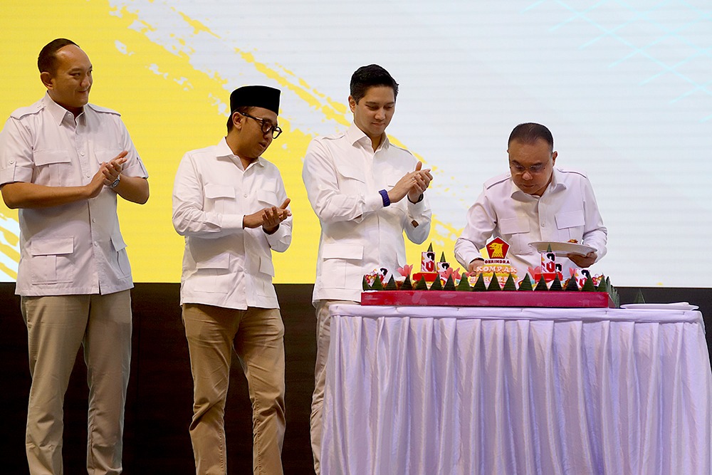 Puncak acara ditandai dengan pemotongan tumpeng oleh Sufmi Dasco Ahmad dan pemotongan kue ulang tahun oleh Wakil Ketua Dewan Pembina Gerindra Siti Hediati Hariyadi (Titiek Soeharto). Potongan tumpeng pertama diberikan kepada Ahmad Muzani, sementara potongan kue pertama diserahkan Titiek kepada Dasco.