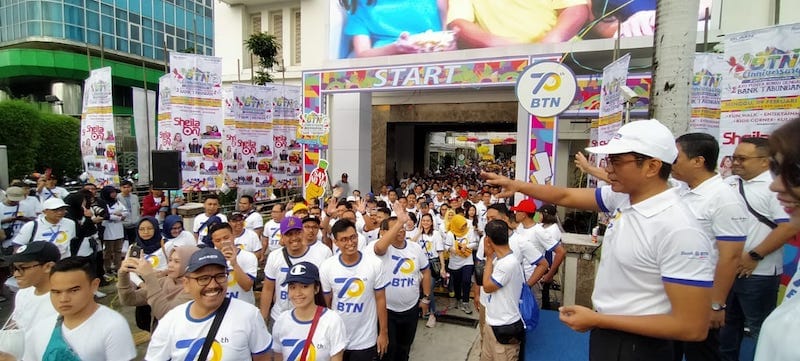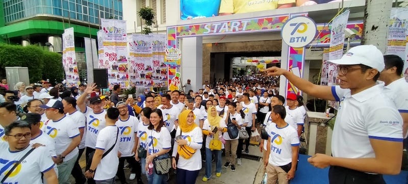 SUARAINDONEWS.COM, Jakarta-Direktur utama PT Bank Tabungan Negara (Persero) Tbk. Pahala N Mansury didampingi Komisaris Bank BTN Andin Hadiyanto dan jajaran Direksi melepas sekitar 5.000 peserta jalan sehat HUT ke70 BTN di halaman utama kantor pusat BTN di Jakarta Minggu (9/2).