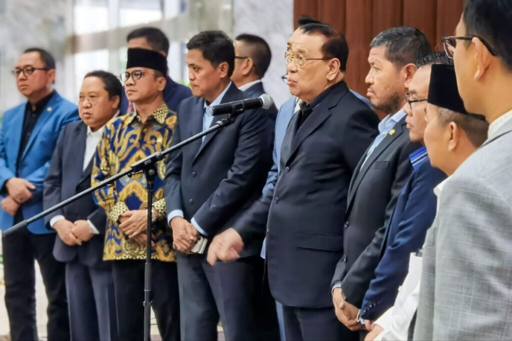 SUARAINDONEWS.COM, Jakarta-Sejumlah anggota perwakilan delapan fraksi Dewan Perwakilan Rakyat RI, minus Partai Demokrasi Indonesia Perjuangan (PDIP) membacakan pernyataan sikap tentang sistem Pemilu di Gedung Nusantara III, Kompleks Parlemen, Senayan, Jakarta, Rabu, (30/5/2023).