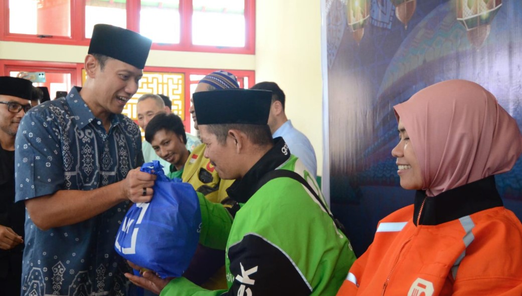 SUARAINDONEWS.COM, Jakarta — Menteri Koordinator Bidang Infrastruktur dan Pembangunan Kewilayahan Agus Harimurti Yudhoyono membagikan bantuan sosial kepada para pengemudi ojek online (ojol) dan warga di Masjid Babah Alun, Rabu (11/3/2026). Kegiatan tersebut berlangsung dalam suasana bulan Ramadan dan disambut antusias oleh masyarakat.