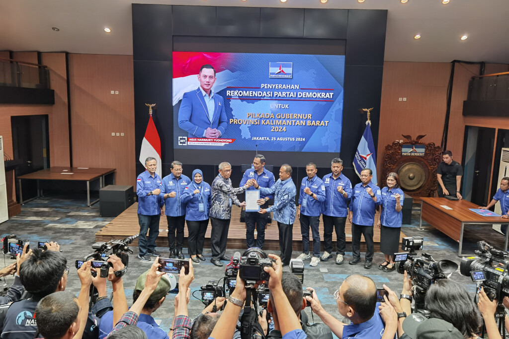 SUARAINDONEWS.COM, Jakarta – Ketua Umum Partai Demokrat, Agus Harimurti Yudhoyono (AHY), secara resmi menyerahkan surat rekomendasi dukungan kepada dua pasangan calon gubernur dan wakil gubernur untuk Provinsi Kalimantan Barat (Kalbar) dan Maluku Utara (Malut). Penyerahan surat rekomendasi model B1 KWK ini dilakukan langsung oleh AHY di Kantor Dewan Pimpinan Pusat (DPP) Partai Demokrat, Jakarta Pusat, pada Minggu (25/8/2024).