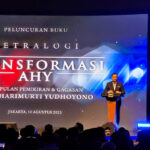 SUARAINDONEWS.COM, Jakarta-Ketua Umum Partai Demokrat Agus Harimurti Yudhoyono (AHY) merilis buku Tetralogi Transformasi AHY pada hari ulang tahunnya yang Ke-45, di Jakarta. Kamis (10/8/2023). Buku itu terdiri dari empat volume, berisi kumpulan pemikiran dan gagasan AHY, mulai saat penugasan di militer hingga terjun ke dunia politik.