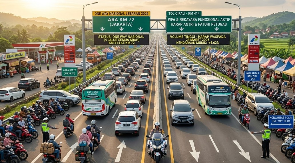 Sistem Contraflow & Ganjil-Genap: Selain one way, skema contraflow di ruas Tol Jakarta-Cikampek (KM 70–KM 47) direncanakan mulai aktif secara bertahap sejak 23 Maret. Aturan ganjil-genap juga akan diberlakukan di ruas Tol Semarang-Batang hingga Jakarta-Cikampek untuk menekan volume kendaraan.