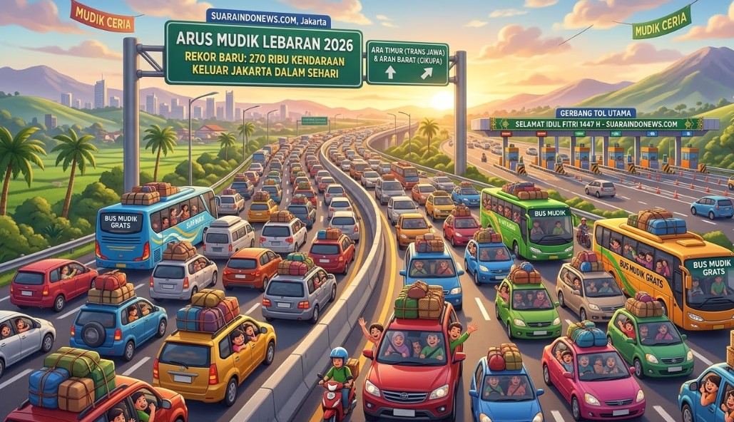 SUARAINDONEWS.COM, Jakarta – Arus mudik Lebaran 2026 mencatatkan rekor baru dengan lonjakan kendaraan keluar dari wilayah Jakarta yang mencapai 270 ribu unit dalam satu hari. Angka ini menjadi yang tertinggi sepanjang sejarah pergerakan mudik nasional.