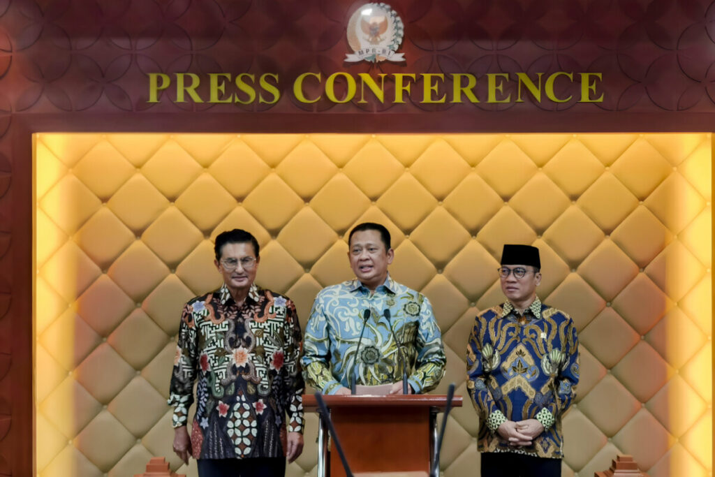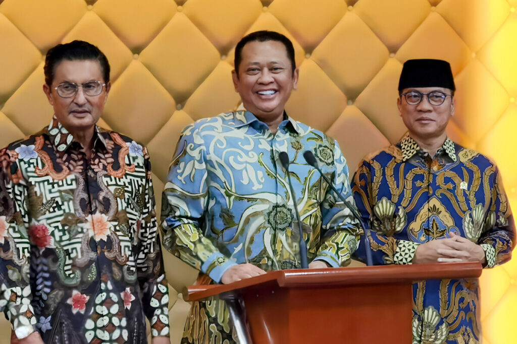 SUARAINDONEWS.COM, Jakarta – Ketua MPR Bambang Soesatyo (kedua kanan) didampingi Wakil Ketua MPR Yandri Susanto (kanan), Ahmad Basarah (kiri), Fadel Muhammad (kedua kiri) memberikan keterangan pers terkait persiapan Sidang Tahunan MPR di Kompleks Parlemen, Senayan, Jakarta, Senin (14/8/2022). MPR siap menggelar Sidang Tahunan MPR 2023 dan Sidang Bersama MPR, DPR, dan DPD pada Rabu (16/8) mulai pukul 09.30 WIB, kemudian dilanjutkan pada pukul 13.30 WIB untuk melaksanakan Rapat Paripurna DPR.