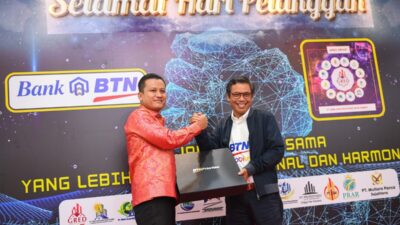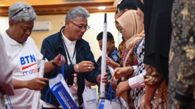 SUARAINDONEWS.COM, Jakarta – Direktur Utama Bank BTN Nixon LP Napitupulu bersama Komisaris Utama GRED Group Muhamad Efendi berbincang dengan nasabah KPR Bank BTN dalam rangka Perayaan Hari Pelanggan Nasional di Perumahan Kemala Dandelion, Bekasi, Jawa Barat, Senin (4/9). Dalam Perayaan Hari Pelanggan Nasional seluruh Direksi Bank BTN terjun langsung melakukan pelayanan kepada para nasabah Bank BTN di seluruh Indonesia.