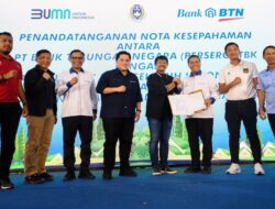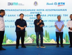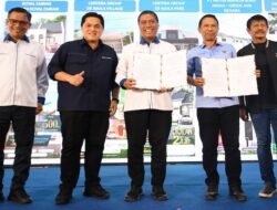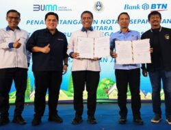 SUARAINDONEWS.COM, Sidoarjo-Menteri BUMN Erick Thohir dan Direktur Utama Bank BTN Nixon LP Napitupulu menyaksikan Direktur Consumer Bank BTN Hirwandi Gafar dan Sekjen PSSI Yunus Nusi melakukan Penandatanganan Nota Kesepahaman terkait kerjasama Penyediaan Jasa Layanan Perbankan di Sidoarjo, Sabtu (9/9). Kolaborasi antara Bank BTN dan PSSI akan memberikan kemudahan bagi para pelaku olahraga sepakbola untuk bisa memiliki rumah impian yang terjangkau dan layak huni. Pada kesempatan yang sama Bank BTN memberikan persetujuan KPR kepada Indra Sjafrie yang merupakan Direktur Teknik PSSI.(ANTON)