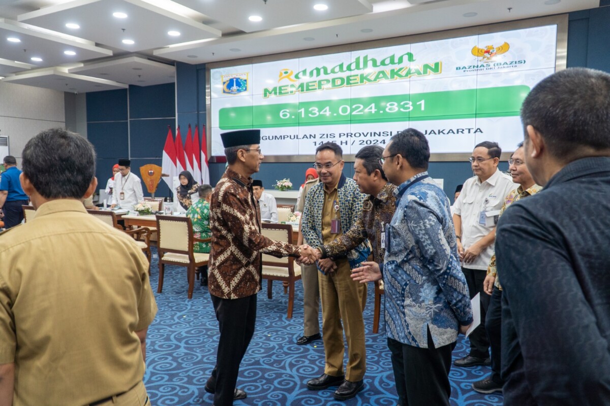 Direktur Teknologi dan Operasional merangkap Pelaksana Tugas (Plt.) Direktur Utama Bank DKI, Amirul Wicaksono melakukan ramah tamah dengan Pj Gubernur DKI Jakarta, Heru Budi Hartono dalam acara Penunaian Zakat Infak, dan Sedekah (ZIS) Pemerintah Provinsi DKI Jakarta dengan tema “Ramadan Memerdekakan: Merdekanya Mustahik, Berkahnya Muzaki”, di Balaikota Jakarta pada Selasa (26/03).