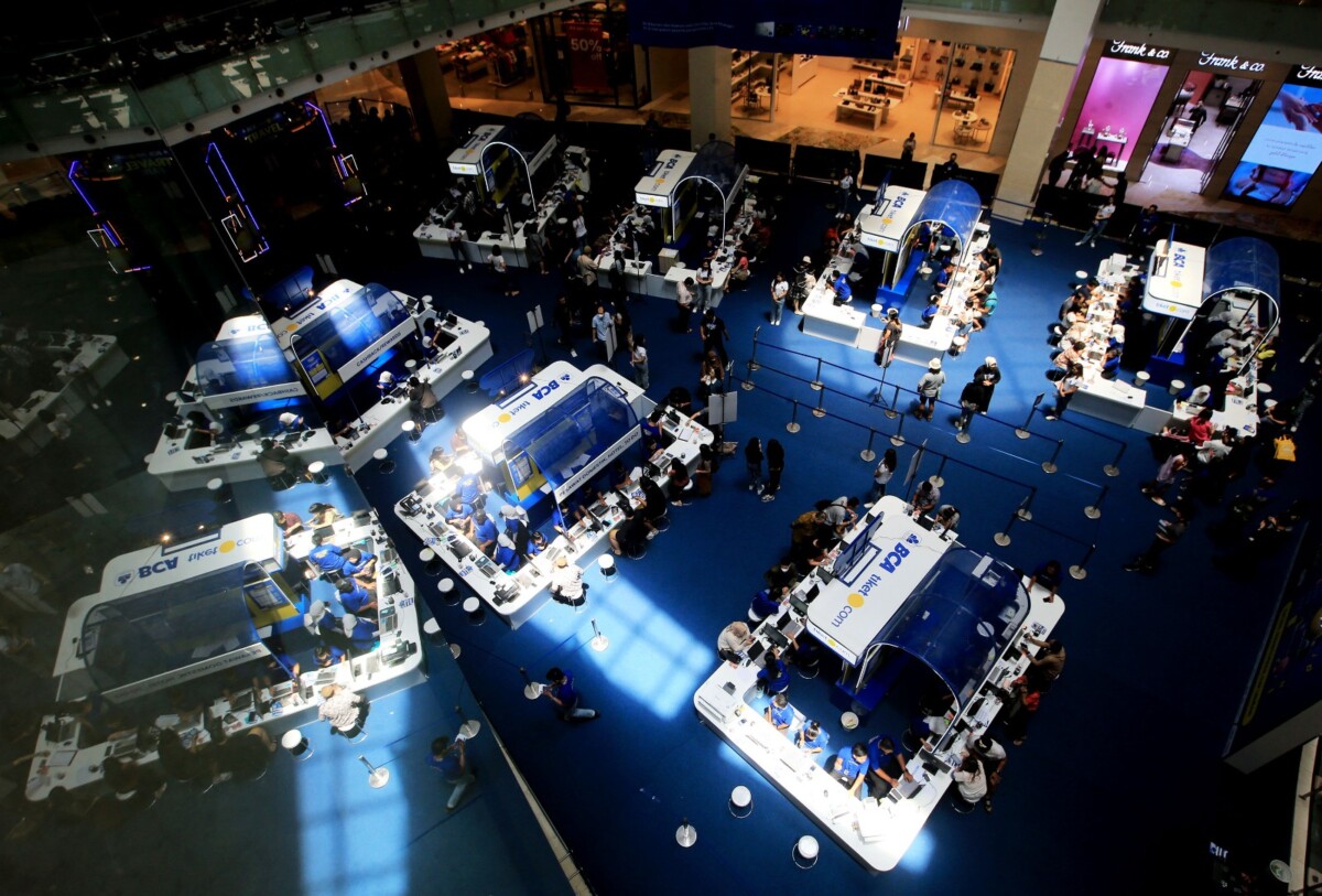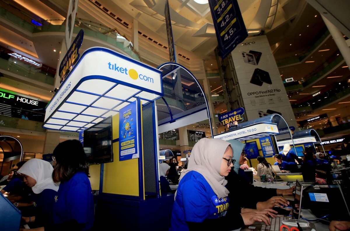 SUARAINDONEWSCOM, Jakarta – Co-Founder & Chief Marketing Officer, tiket.com Gaery Undarsa menyaksikan pengunjung melakukan transaksi saat kameran Travel Fair 2023 di Mal Gandaria City, Jakarta, Jumat (22/09/2023) kemarin. BCA tiket.com Travel Fair 2023 berikan penawaran menarik dengan harga spesial untuk berbagai kebutuhan perjalanan wisata, mulai dari penerbangan, akomodasi, hingga aktivitas liburan, di berbagai destinasi wisata favorit domestik dan internasional.