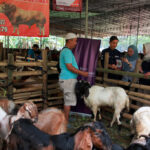 SUARAINDONEWS.COM, Jakarta-Sekretaris Perusahaan PT Bank Muamalat Indonesia Tbk Hayunaji (kedua kiri) bersama Region Head Jakarta West Erick Ermawan (kanan) dan Branch Manager Bank Muamalat Bintaro Jaya Melinawati Amran (kedua kanan) menyaksikan nasabah melakukan pembelian hewan kurban menggunakan fitur QRIS Muamalat DIN di salah satu pusat penjualan hewan di Bintaro Jaya, Tangerang Selatan, Kamis (15/6).