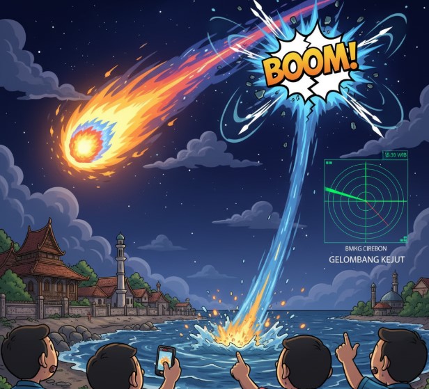 SUARAINDONEWS.COM, Cirebon – Warga Cirebon, Jawa Barat, sempat dihebohkan dengan suara dentuman keras dan kemunculan bola api di langit pada Minggu (5/10/2025) malam. Setelah dilakukan analisis, peneliti Badan Riset dan Inovasi Nasional (BRIN) memastikan bahwa fenomena tersebut disebabkan oleh meteor berukuran cukup besar yang melintas di atmosfer dan jatuh ke Laut Jawa.