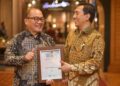 SUARAINDONEWS.COM, Jakarta – Direktur Finance, Strategy and Treasury PT Bank Syariah Nasional (BSN) Abdul Firman berfoto bersama Corporate Secretary BSN Dody Agoeng usai menerima penghargaan Financial Brands Awards di Jakarta, Selasa (31/3).