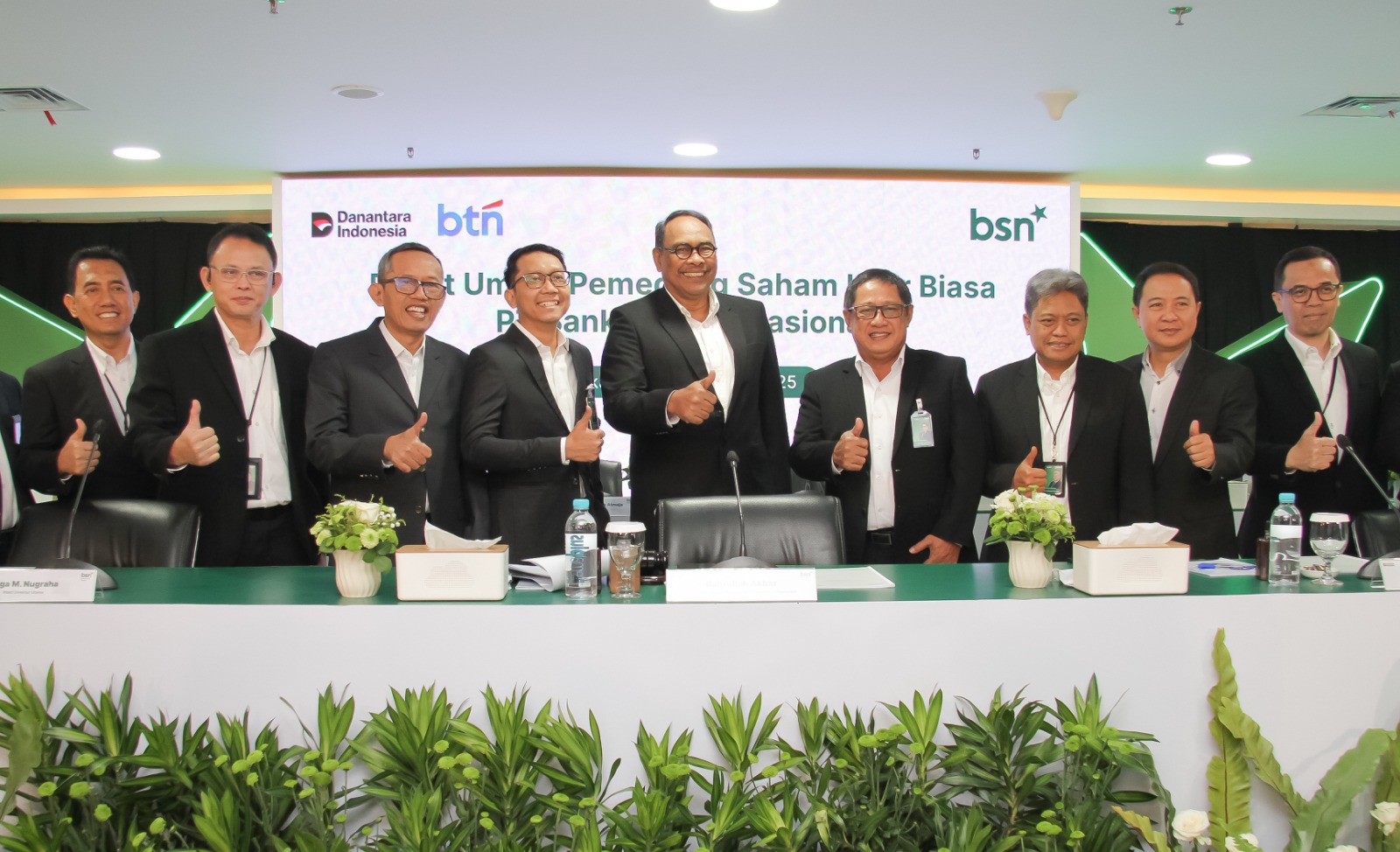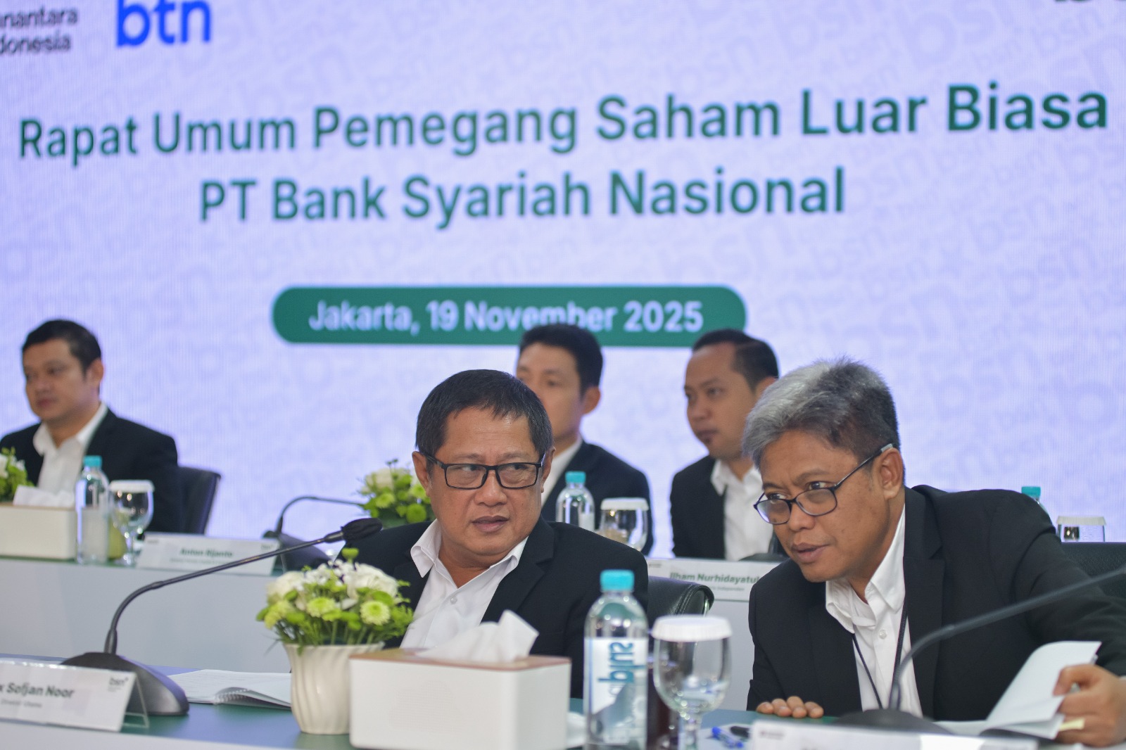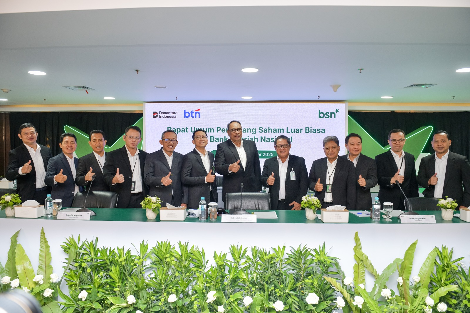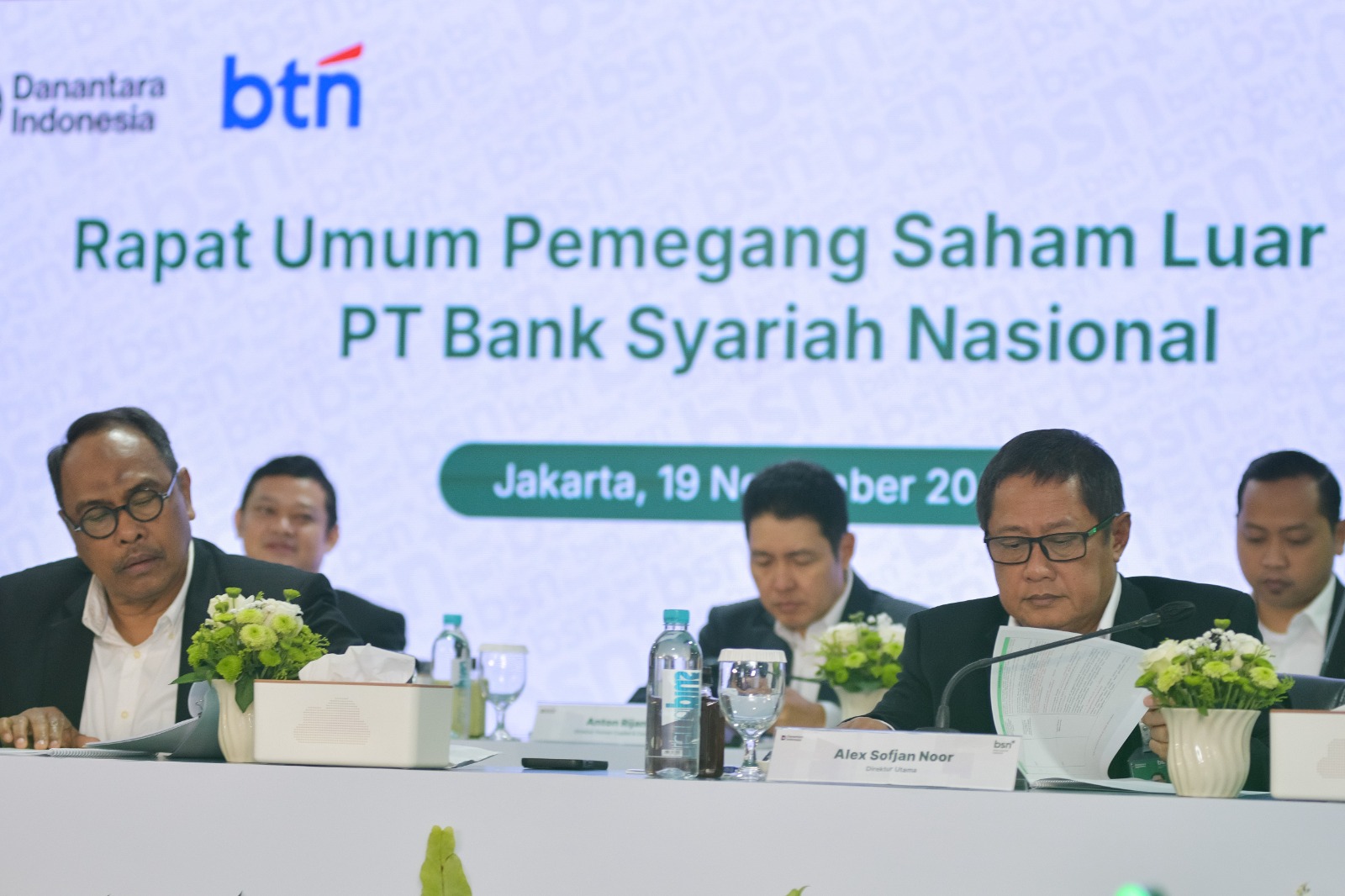 SUARAINDONEWS.COM, Jakarta – RUPSLB Bank Syariah Nasional (BSN) yang dipimpin oleh Komisaris Utama merangkap sebagai komisaris independent BSN Bahrullah Akbar didampingi oleh jajaran komisaris, Direktur Utama BSN Alex Sofjan Noor, Wakil Direktur Utama BSN Arga M. Nugraha beserta jajaran Direksi BSN lainnya menyetujui 4 mata acara yang menjadi agenda dalam RUPSLB, ya g diselenggarakan di Jakarta, Rabu (19/11). Setelah resmi menerima limpahan aset dan liability Unit Usaha Syariah (UUS) BTN, Bank Syariah Nasional (BSN) menyatakan kesiapannya untuk menjadi katalitas penguat pangsa pasar syariah di Indonesia. BSN pasca spin off beraset sekitar Rp71 Triliun juga siap mengejar pertumbuhan aset perseroan diatas Rp100 Triliun pada 2 tahun ke depan. Kesiapan BSN yang saat ini masuk dalam kelompok Bank Syariah dengan aset terbesar kedua di Indonesia juga disampaikan pada RUPSLB tersebut.