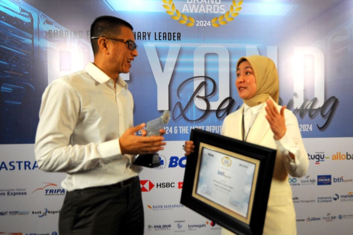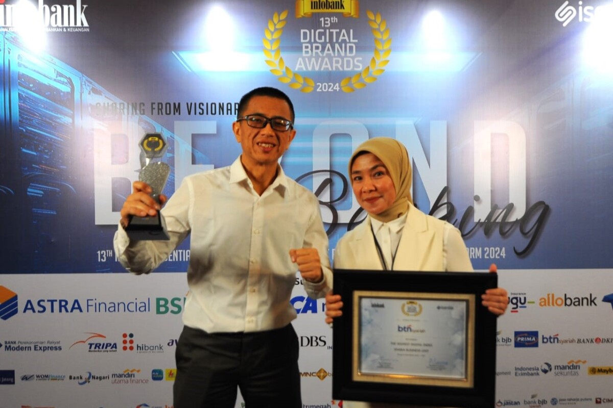 SUARAINDONEWS.COM, Jakarta – Head of Digital Channel Division PT Bank Tabungan Negara (Persero) Tbk. Tan Jacky Chen dan Sharia Funding & Treasury Deputy BTN Asvanti Handaru kompak tersenyum sambil memegang penghargaan dari ajang Digital Brand Recognition 2024, di Jakarta, Senin (1/4). BTN dan Unit Usaha Syariah (UUS) BTN meraih total 13 penghargaan dari ajang tersebut atas penilaian masyarakat melalui media sosial terhadap produk dan layanan BTN serta BTN Syariah. Beberapa penghargaan tersebut di antaranya The Best Mobile Banking Conventional Bank KBMI 3, The Best Sharia Business Unit in Digital Brand 10 Years in a Row, dan The Best Conventional Bank KBMI 3.