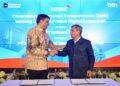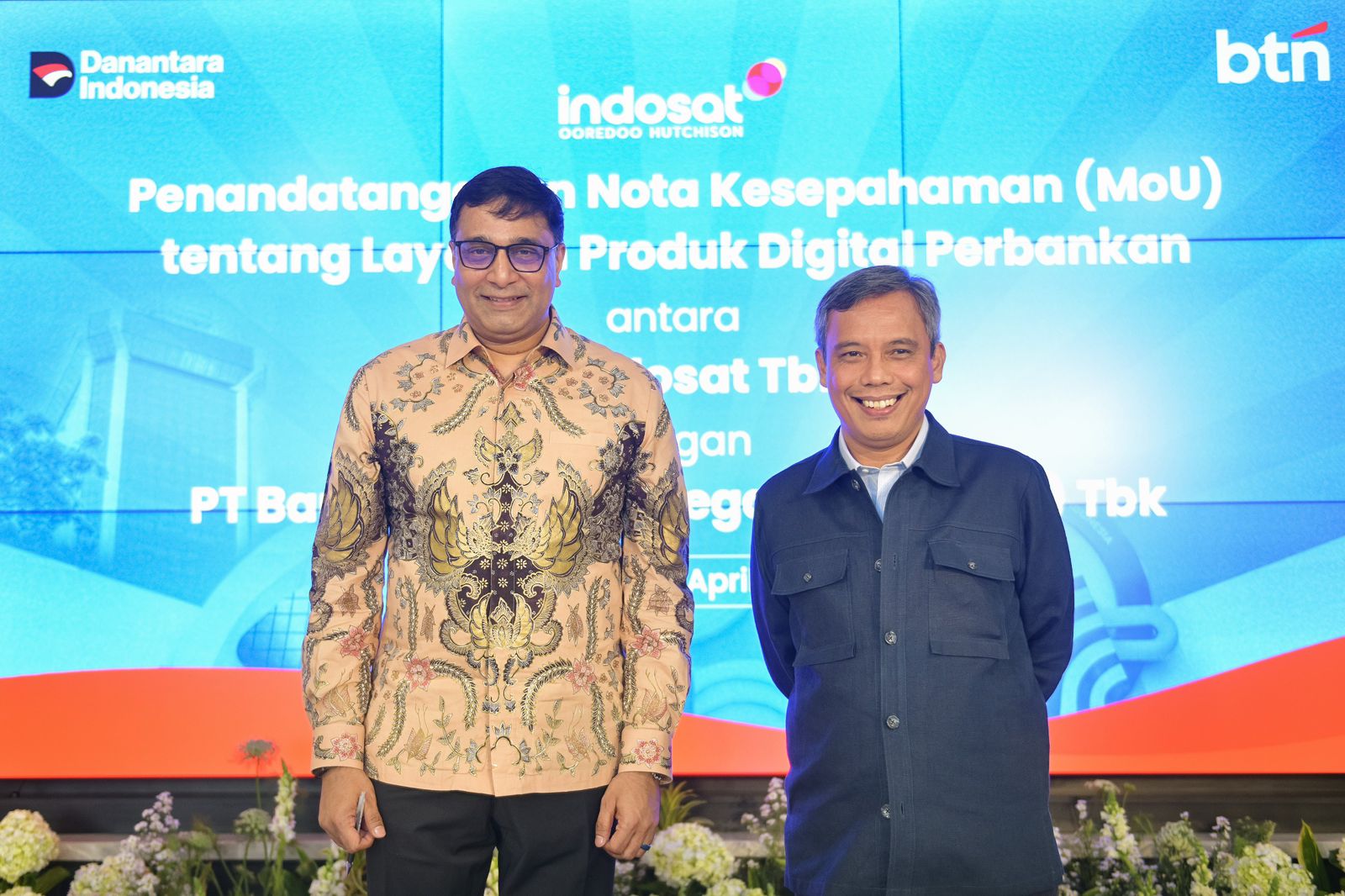 SUARAINDONEWS. COM, Jakarta – Direktur Utama PT Bank Tabungan Negara (Persero) Tbk (BTN) Nixon L.P. Napitupulu (kanan) bersama President Director and Chief Executive Officer Indosat Ooredoo Hutchison Vikram Sinha (kiri) menunjukkan dokumen nota kesepahaman kerja sama layanan keuangan digital di Jakarta, Rabu (16/4). Melalui kolaborasi ini, BTN memanfaatkan kekuatan distribusi digital Indosat untuk memperluas jangkauan layanan, meningkatkan akses, serta menghadirkan solusi keuangan yang lebih dekat dengan kebutuhan masyarakat.