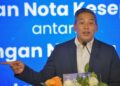 SUARAINDONEWS.COM, Jakarta – Direktur Network & Retail Funding PT Bank Tabungan Negara (Persero) Tbk (BTN) Rully Setiawan (tengah) bersama Direktur Utama PT Kereta Api Pariwisata (KAI Wisata) Raden Agus Dwinanto Budiadji (kedua dari kanan) menandatangani Nota Kesepahaman (MoU) kerja sama strategis yang disaksikan Managing Director of Commercial and Business PT Kereta Api Indonesia (Persero) Rafli Yandra (kanan) di Stasiun Gambir, Jakarta, Senin (9/3/2026).