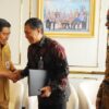 SUARAINDONEWS.COM, Jakarta – Sekjen Kementerian Dalam Negeri (Kemendagri) Suhajar Diantoro bersama Direktur Consumer BTN Hirwandi Gafar didampingi Direktur Distribution & Institutional Funding BTN Jasmin, Direktur SME & Retail Funding BTN Muhammad Iqbal menunjukkan Naskah Akta Perjanjian Kerjasama antara BTN dan Kemendagri di Jakarta, Selasa (23/4). Kerjasama ini merupakan wujud sinergi yang saling menguntungkan dalam rangka pemanfaatan produk dan jasa layanan perbankan khususnya untuk memenuhi kebutuhan ASN akan hunian dan berbagai produk perbankan yang manfaatnya dapat dirasakan seluruh unit kerja di lingkup Kementerian Dalam Negeri RI.