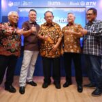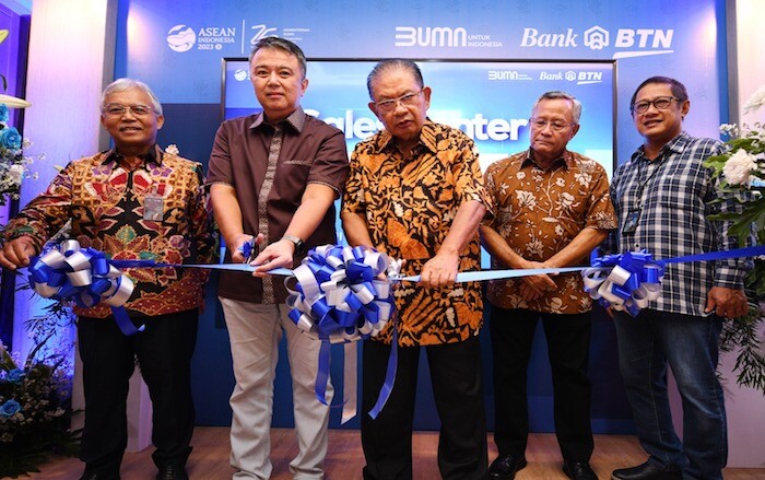 SUARAINDONEWS.COM, Tangerang-Wakil Direktur Utama Bank BTN Oni R Febriarto berbincang bersama Wakil Komisaris Utama Bank BTN Iqbal Latanro, Komisaris Independen Bank BTN Armand B Arief, Direktur Distribution and Funding Bank BTN Jasmin dan SEVP Operations Bank BTN Alex Sofjan Noor saat meresmikan Pembukaan Sales Center BSD, Tangerang dan Sales Center Surabaya serta Launching BTN Properti Exclusive Expo di Kantor Cabang Bank BTN Bumi Serpong Damai, Tangerang, Banten, Jumat (23/6).