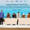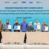 SUARAINDONEWS.COM, Jakarta – Direktur Consumer PT Bank Tabungan Negara (Persero)Tbk, Hirwandi Gafar (kiri) memperlihatkan nota kesepahaman antara PLN dan BTN yang telah ditanda tangani disaksikan oleh Direktur Utama PLN Darmawan Prasojo (tengah) dan Direktur Retail dan Niaga PLN Edi Srimulyanti (Kanan) dalam rangka mengakselerasi pertumbuhan industri nasional khususnya sebagai sektor layanan perbankan di Jakarta, Kamis (11/7). BTN menjalin kerjasama tersebut untuk mendukung kegiatan usaha PLN serta penyediaan layanan perbankan yang lengkap.