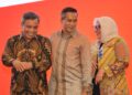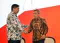 SUARAINDONEWS.COM, Jakarta – Direktur Utama PT Bank Tabungan Negara (Persero) Tbk, Nixon LP Napitupulu (kiri), bersama Direktur Commercial Banking BTN, Hermita (kanan), berbincang dengan Menteri Perumahan dan Kawasan Permukiman, Maruarar Sirait (kedua kiri), serta Ketua Umum Kamar Dagang Indonesia, Anindya N. Bakrie (kedua kanan), dalam Sosialisasi KUR Perumahan di Wisma Danantara Indonesia, Jakarta, Senin (8/9).