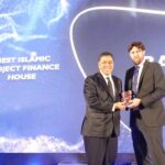 SUARAINDONEWS.COM, Jakarta-Direktur Consumer PT Bank Tabungan Negara (Persero) Tbk. Hirwandi Gafar tersenyum menerima penghargaan The Best Islamic Project Finance House 2023 yang diserahkan Middle East Editor Euromoney Elliot Wilson di acara Euromoney Awards of Excellence 2023 di Dubai, Rabu (21/6).