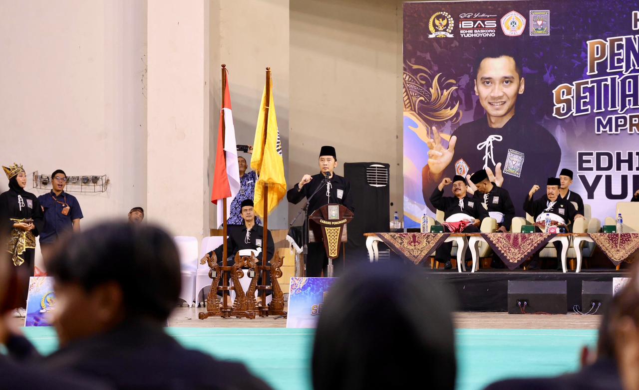 SUARAINDONEWS.COM, Ponorogo – Wakil Ketua MPR RI dari Partai Demokrat Edhie Baskoro Yudhoyono (Ibas) menyampaikan dukungan penuh bagi perkembangan dan pelestarian pencak silat sebagai warisan budaya sekaligus sarana pembentukan karakter bangsa. Ia menegaskan pentingnya menjunjung sportivitas, memperkuat persaudaraan, serta menjadikan pencak silat sebagai kebanggaan nasional yang mampu mengharumkan nama Indonesia di dunia.