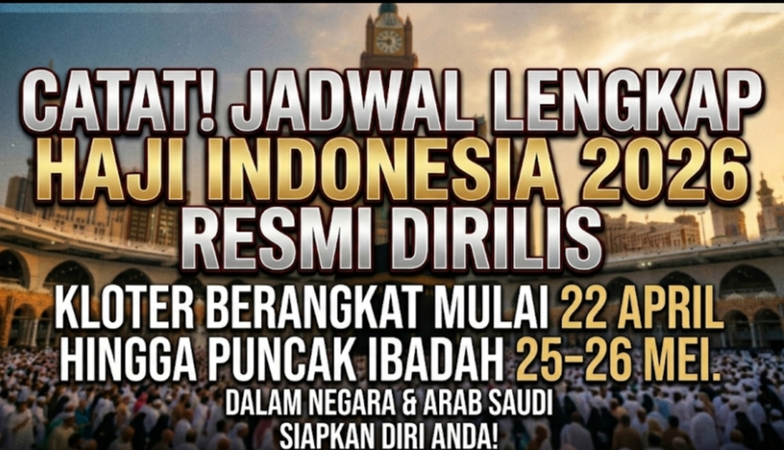 SUARAINDONEWS. COM, Jakarta, 15 April 2026 — Pemerintah resmi mengumumkan jadwal lengkap penyelenggaraan ibadah haji tahun 1447 Hijriah/2026 Masehi. Menteri Haji dan Umrah K.H. Mochamad Irfan Yusuf Hasyim (Gus Irfan) menyampaikan operasional haji akan dimulai pada April 2026 dengan keberangkatan jemaah secara bertahap.