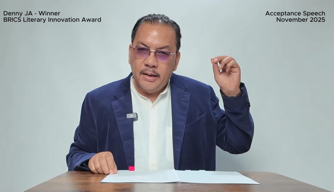 SUARAINDONEWS.COM, Khabarovsk, Rusia — Penulis dan inovator sastra Indonesia, Denny JA, menegaskan pentingnya suara Asia, Afrika, dan Amerika Latin dalam peta sastra dunia ketika menerima BRICS Award for Literary Innovation 2025.