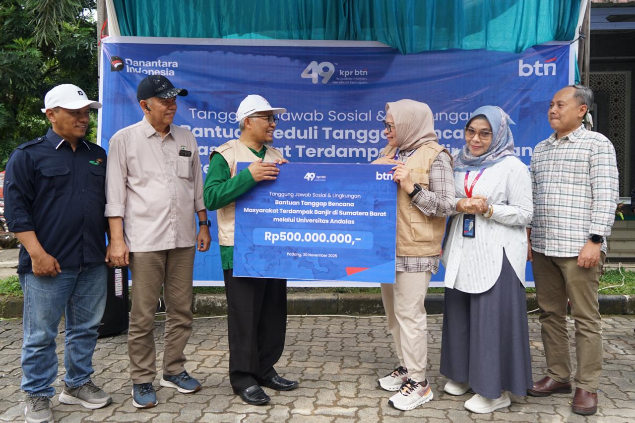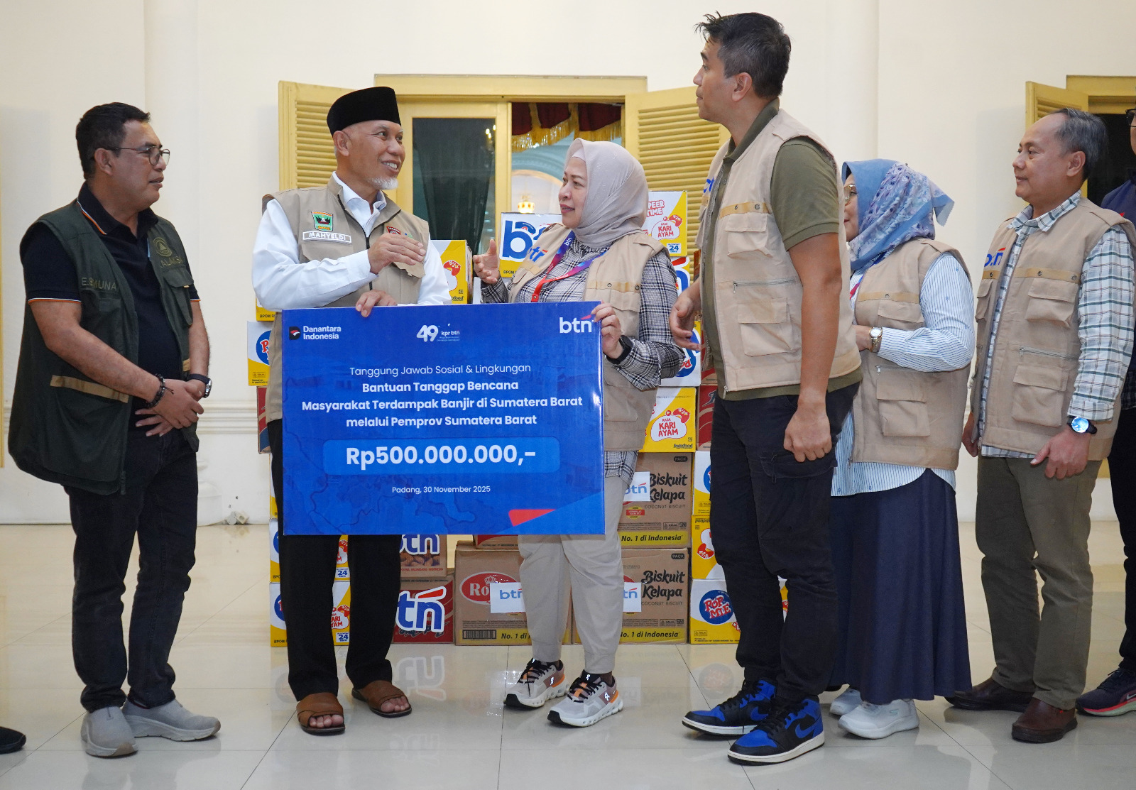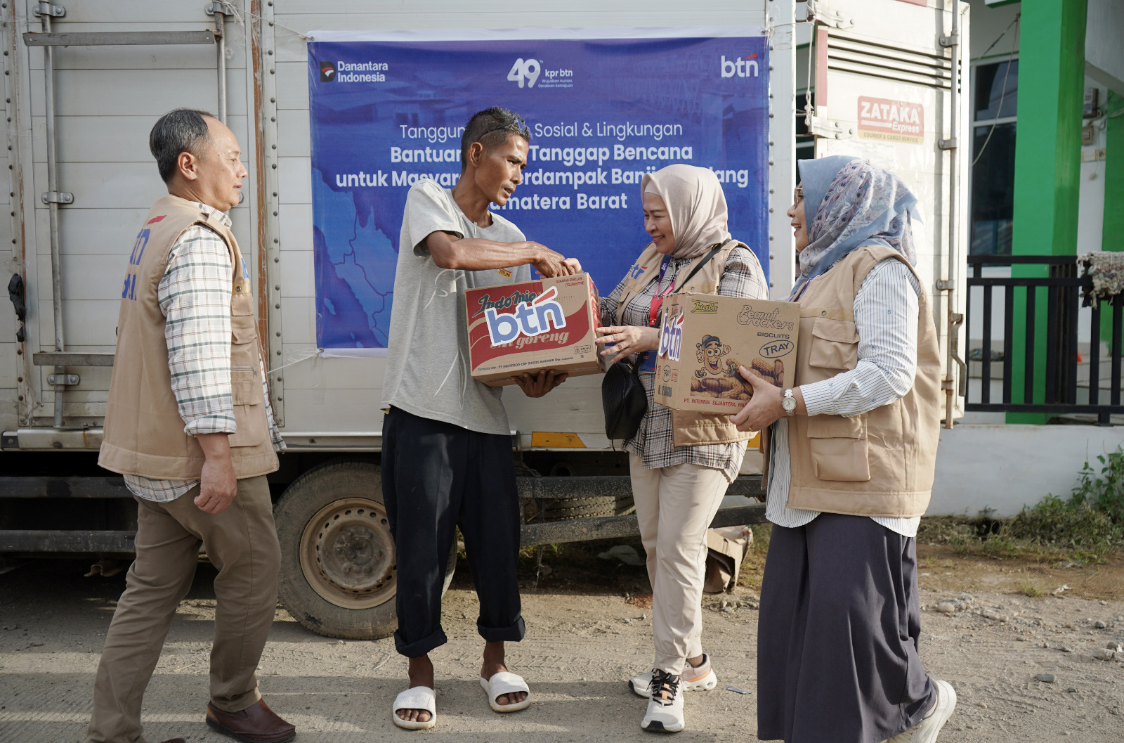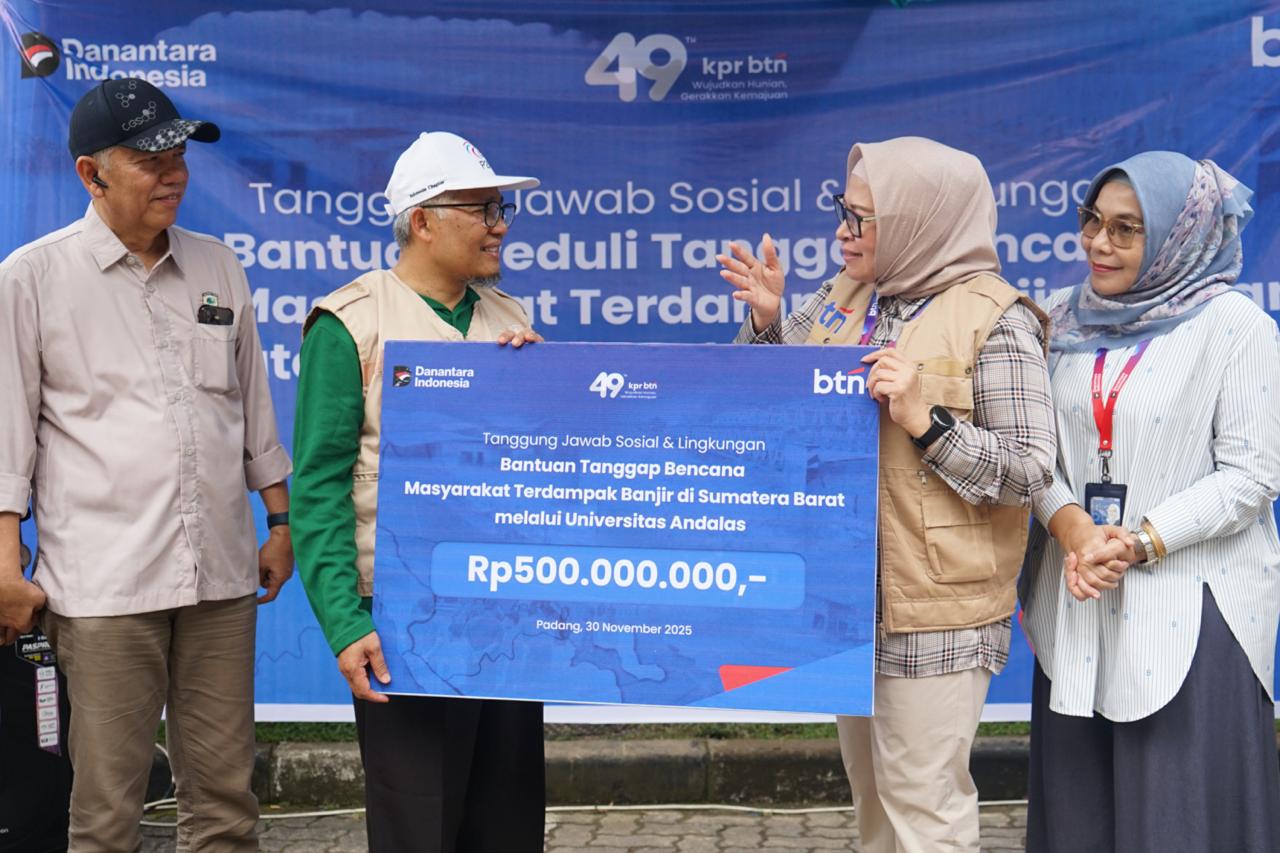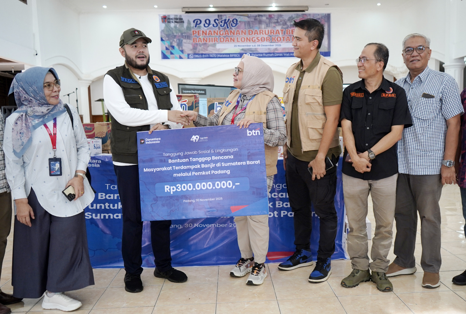 SUARAINDONEWS.COM, Jakarta – Direktur Commercial Banking PT Bank Tabungan Negara (Persero) Tbk, Hermita, didampingi Corporate Secretary BTN, Ramon Armando, Wakil Kepala Wilayah BTN Sumatera, Aries Tuti, serta Kepala Cabang BTN Padang, Sudaryanto, memberikan bantuan langsung kepada masyarakat terdampak banjir di Padang, Minggu (30/11). Selain turun ke lapangan untuk bertemu warga dan menyalurkan bantuan, BTN juga memberikan dukungan melalui Universitas Andalas, Universitas Negeri Padang, Pemerintah Kota Padang, serta Pemerintah Provinsi Sumatera Barat yang memiliki akses langsung ke para korban. Aksi tanggap bencana ini dijalankan sejalan dengan arahan Danantara untuk bergerak cepat membantu masyarakat yang terdampak banjir di Sumatera. Secara total, BTN menyalurkan bantuan lebih dari Rp2 miliar untuk wilayah Padang.
