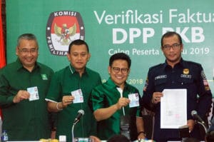 Tim verifikasi KPU dipimpin Komisioner KPU Hasyim Asyari didampingi Komisioner Bawaslu Mochamad Afifuddin melakukan verifikasi secara faktual kepengurusan PKB di tingkat pusat. Hasilnya, tak ada hambatan dalam proses verifikasi itu dan KPU menyatakan data kepengurusan PKB sesuai dengan yang ada di KPU. Verifikasi itu memeriksa 3 aspek, yaitu kesesuaian data kepengurusan inti DPP, keterwakilan 30 persen perempuan di kepengurusan, dan keabsahan domisili kantor. Proses verifikasi dilakukan dengan mencocokkan data KTP, KTA milik pengurus dan dokumen lain. “Alhamdulillah kita mengucapkan terima kasih kepada Ketua KPU Pak Arief dan seluruh jajaran, kemudian Bawaslu seluruh jajaran yang telah melaksanakan verifikasi faktual. Semoga langkah ini menjadi bagian dari mensukseskan pemilu tahun 2019,” ucap Cak Imin.