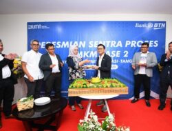 SUARAINDONEWS.COM, Jakarta-Direktur Utama Bank BTN Nixon LP Napitupulu didampingi Direktur Risk Management Bank BTN Setiyo Wibowo melakukan pemotongan tumpeng dalam acara Peresmian Sentra Proses UMKM di Surabaya, Jawa Timur, Jumat (8/9). Peresmian Sentra UMKM ini merupakan wujud komitmen Bank BTN dalam percepatan dan simplifikasi proses sehingga dapat membantu meningkatkan perekonomian UMKM dengan memberikan pembiayaan murah berupa Kredit UMKM dan KUR. Penyaluran kredit kepada UMKM juga diyakini berdampak positif terhadap kinerja Bank BTN.(ANTON)
