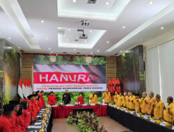 SUARAINDONEWS.COM, Jakarta – Ketua Umum PDI Perjuangan Megawati Soekarnoputri (tengah) bersama Ketua Umum Partai Hanura Oesman Sapta Odang (kedua kanan), Bacapres PDI Perjuangan Ganjar Pranowo (kedua kiri), Sekjen PDI Perjuangan Hasto Kristiyanto (kiri) dan Sekjen Partai Hanura Kodrat Shah (kanan) serta jajaran pengurus partai menyanyikan lagu Indonesia Raya saat silahturahmi di DPP PDIP, Jakarta, Senin (28/8/2023). Pertemuan tersebut dalam rangka silahturahmi dan kerja sama partai politik mendukung bakal calon presiden Ganjar Pranowo pada Pemilu 2024. (ANTON)