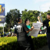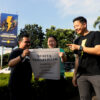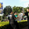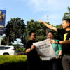 SUARAINDONEWS.COM, Jakarta – Co-Founder dan Chief Marketing Officer tiket.com Gaery Undarsa (kanan) menjelaskan kepada warga yang tengah membaca selebaran informasi Harga Geledek Tergelegar di Kawasan Senayan, Jakarta, Minggu (20/10).