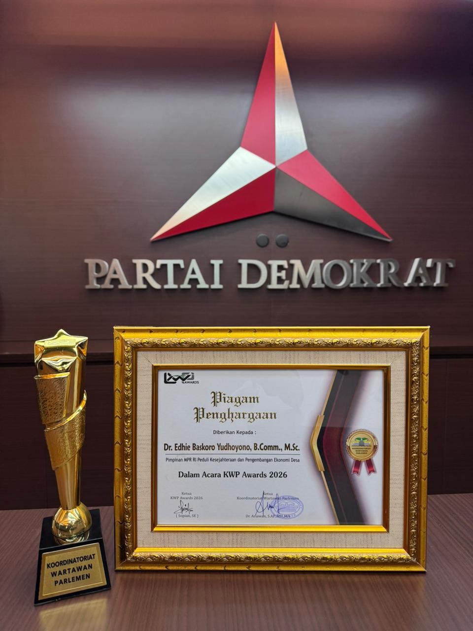 SUARAINDONEWS.COM, Jakarta – Wakil Ketua MPR RI sekaligus Ketua Fraksi Partai Demokrat DPR RI, Edhie Baskoro Yudhoyono (Ibas), menerima penghargaan KWP Awards 2026 dari Koordinat Wartawan Parlemen sebagai Pimpinan MPR RI Peduli Kesejahteraan dan Pengembangan Ekonomi Desa. Pada kesempatan yang sama, Fraksi Partai Demokrat juga dianugerahi penghargaan sebagai Fraksi Peduli Stabilitas Ekonomi dan Kesejahteraan Kerakyatan.
