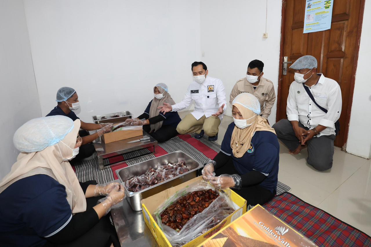 Saat meninjau area dapur, Ibas secara khusus memperhatikan proses penyortiran bahan makanan dan menekankan pentingnya kualitas serta kebersihan bahan baku yang digunakan.
