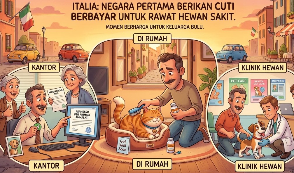 SUARAINDONEWS.COM, Jakarta – Sebuah langkah tak biasa datang dari Italia yang kini membuat dunia kerja ikut “berempati”. Melalui putusan hukum dan praktik ketenagakerjaan terbaru, pekerja kini dapat mengambil cuti berbayar untuk merawat hewan peliharaan yang sakit—dan ini bukan sekadar alasan mengada-ada.
