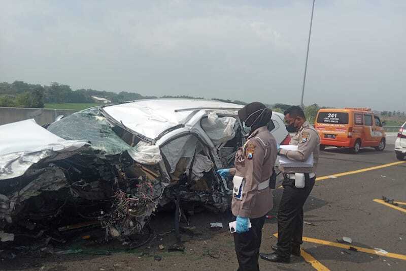 “Penumpang ada lima orang. Dua meninggal. Tiga orang luka sudah dievakuasi ke RS Kertsono, Jawa Timur untuk menjalani perawatan intensif. Satu luka berat, dua luka ringan, termasuk anaknya (Gala Sky, Red.) dan satu perempuan sebagai baby sitter.” kata Kombes Lutfi kepada wartawan. (Tumpak S)