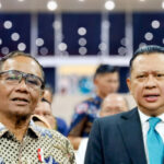 SUARAINDONEWS.COM, Jakarta-Ketua MPR, Bambang Soesatyo bersama Menkopolhukam, Mahfud MD dan Wakil Ketua Komisi III DPR, Ahmad Sahroni usai menghadiri Konferensi Internasional bertajuk “Recognition, Respect and Protection of the Constitutional Rights of Indigeneous People in National and International Perspective” di Gedung Nusantara IV MPR RI, Jakarta, Senin, (7/8/2023).