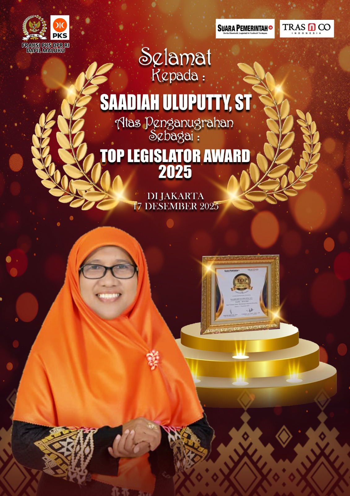Dengan raihan penghargaan ini, Saadiah Uluputty, ST semakin mengukuhkan posisinya sebagai legislator perempuan berprestasi yang konsisten memperjuangkan kepentingan daerah, menjembatani aspirasi rakyat Maluku, serta menghadirkan kerja politik yang bermartabat di tingkat nasional.