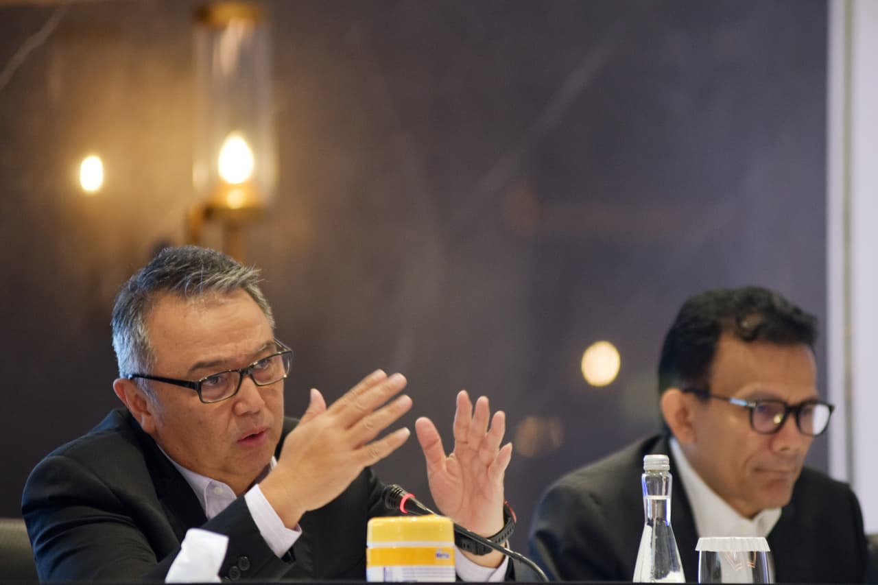 SUARAINDONEWS.COM, Jakarta – Direktur Utama PT Bank Tabungan Negara (Persero) Tbk (BTN) Nixon LP Napitupulu (tengah) bersama Wakil Direktur Utama BTN Oni Febriarto Rahardjo (ketiga dari kanan), Direktur Network and Retail Funding BTN Rully Setiawan (paling kanan), Direktur Finance and Strategy BTN Nofry Rony Poetra (kedua dari kanan), Direktur Risk Management BTN Setiyo Wibowo (ketiga dari kiri), Direktur Consumer Banking BTN Hirwandi Gafar (kedua dari kiri), serta SEVP Digital Business BTN Thomas Wahyudi (paling kiri) saat konferensi pers Paparan Kinerja BTN Tahun 2025 di Ruang Postpaar, Menara 1 BTN, Jakarta, Senin (9/2).