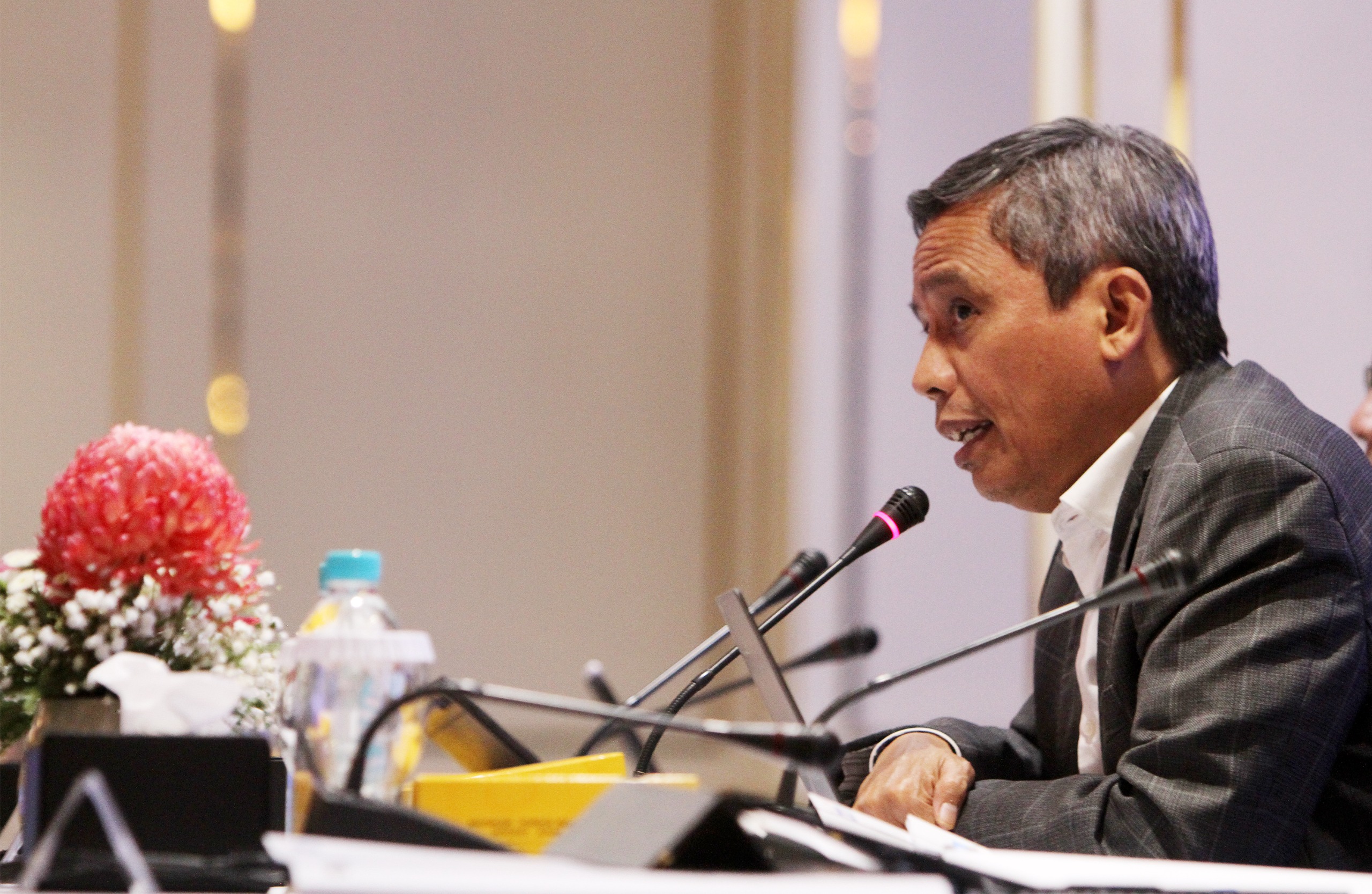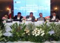 SUARAINDONEWS.COM, Jakarta – Direktur Utama PT Bank Tabungan Negara (Persero) Tbk Nixon LP Napitupulu (ketiga kiri) didampingi Direktur Risk Management Setiyo Wibowo (kanan), Direktur Finance & Strategy Nofry Rony Poetra (kedua kanan), Direktur Consumer Banking Hirwadi Gafar (kedua kiri), serta SEVP Digital Business Thomas Wahyudi (kiri) tersenyum di sela konferensi pers paparan kinerja Kuartal I 2026 di Menara BTN, Jakarta, Rabu (15/4).