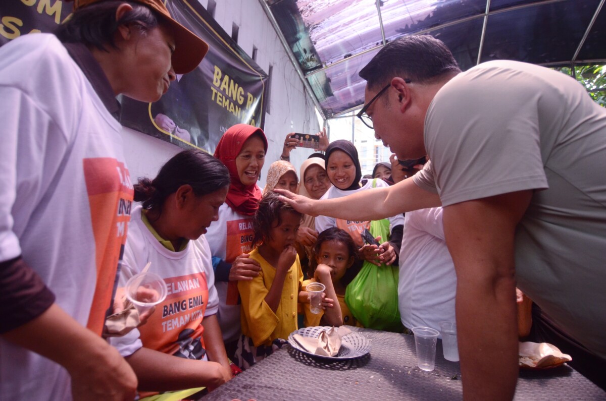 Dalam kunjungannya, Ridwan Kamil terlihat aktif berinteraksi dengan warga dan relawan. Ia tidak hanya membagikan makanan secara langsung, tetapi juga menyapa dan berswafoto dengan warga yang antusias menyambutnya. “Saya datang jauh ke sini untuk bersilaturahmi,” ujarnya, mengenakan kaus lengan pendek berwarna hijau tosca dan kacamata hitam.