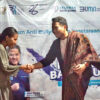 SUARAINDONEWS.COM, Maumere – Human Capital & Strategic Division Head PT Bank Tabungan Negara (Persero) Aldo Bimantoro (keenam kiri) bersama Penata Kelola Perusahaan Negara Muda Rugun Hutapea (kedelapan kiri) menyerahkan secara simbolis bantuan program anti stunting kepada PJ Kepala Desa Magepanda Yosafat Lacidius (ketujuh kiri) dan Camat Magepanda Kristianus Amstrong (kelima kiri) di acara penutupan Relawan Bakti BUMN bersama BTN di Desa Magepanda, Maumere, Nusa Tenggara Timur, Selasa (22/5). BTN kembali bergerak melawan bullying dengan mengedukasi anak dan orang tua di Desa Magepanda bersama 10 Relawan Bakti BUMN Batch V yang terpilih. Selain memberikan edukasi untuk melawan bullying, BTN bersama para relawan juga melaksanakan program anti stunting dengan memberikan edukasi bagi para ibu hamil terkait pemenuhan gizi. Program tersebut juga dilengkapi dengan kegiatan membersihkan sarana pra sarana umum di Desa Magepanda sebagai wujud kepedulian pada lingkungan hidup. Secara total, melalui program TJSL tersebut, BTN menyalurkan bantuan senilai ratusan juta rupiah.