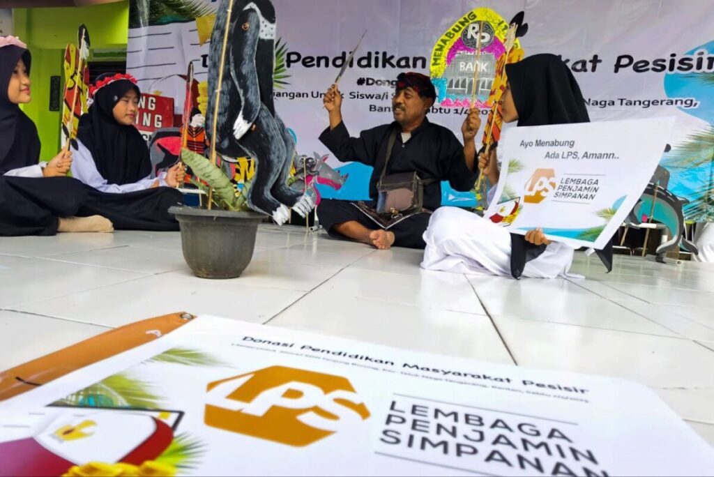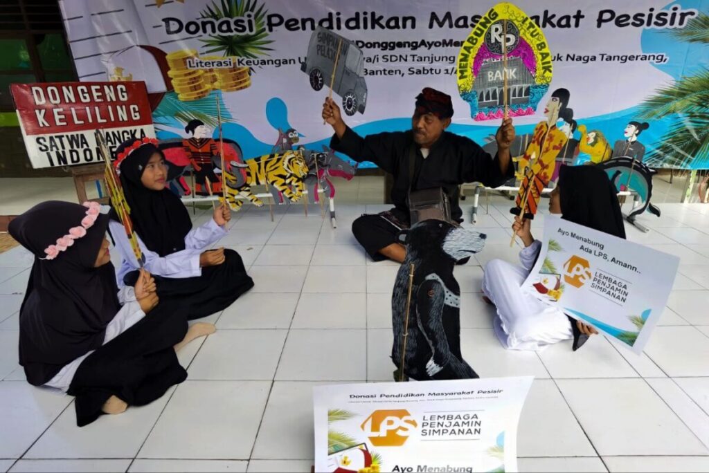 Selain soal perbankan, Pak Syamsudin yang menjadi pendongeng juga menerangkan kepada anak-anak mengenai keamanan simpanan nasabah di perbankan nasional, baik bank plat merah maupun bank swasta nasional karena dana nasabah dijamin oleh Lembaga Penjamin Simpanan (LPS) dengan maksud agar siswa di kawasan yang relatif sulit terhadap akses dunia perbankan dan inklusi keuangan ini dapat terpapar literasi perbankan dan akses inklusi keuangan. FOTO/ANTON