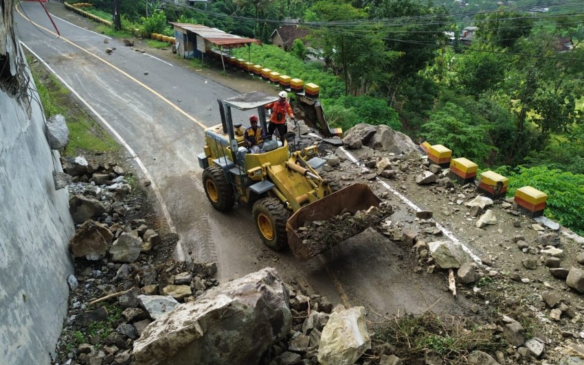 “Penanganan dilakukan secara bertahap dengan memprioritaskan pemecahan batu besar terlebih dahulu menggunakan breaker. Setelah material terpecah, baru dilakukan pengangkutan agar badan jalan bisa segera dibuka,” ujar Javid.