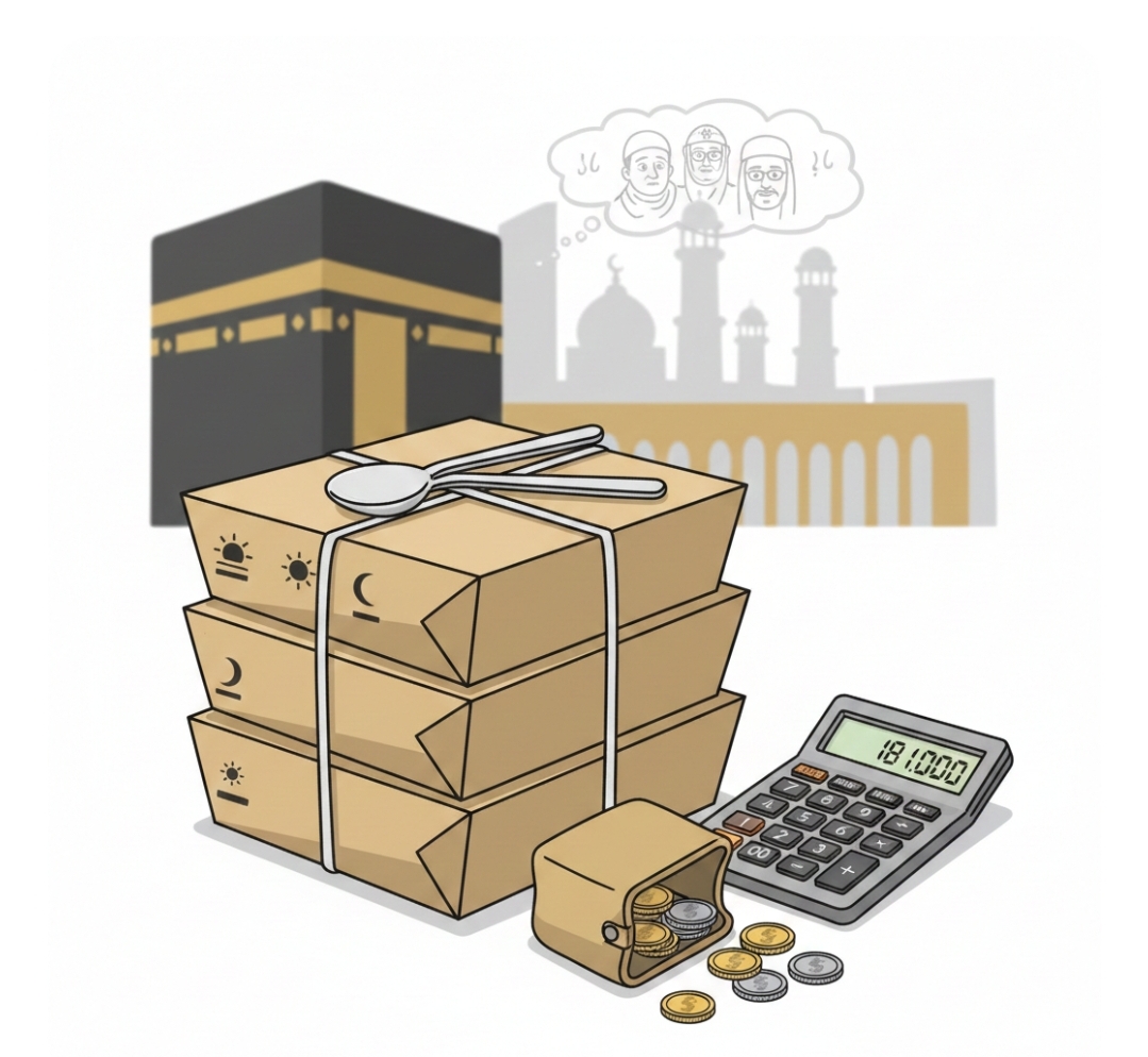 Pernyataan itu sekaligus menjadi sinyal: kalau nanti makanannya mengecewakan, jamaah sudah tahu berapa ‘harga’ di balik nasi kotak tersebut.