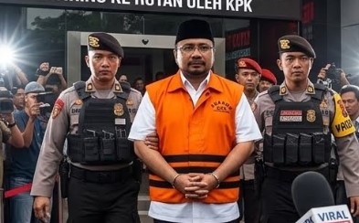 Mengenakan rompi tahanan berwarna oranye yang identik dengan tersangka kasus korupsi, Yaqut tampak tenang saat digiring keluar dari Gedung Merah Putih KPK di Jakarta. Momen tersebut langsung menjadi perhatian publik dan ramai diperbincangkan di berbagai media.