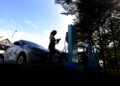 SUARAINDONEWS.COM, Jakarta – Pemilik kendraraan listrik melakukan pengisian ulang daya mobil listrik di Pengisian Bahan Bakar Listrik Umum (SPKLU) milik PT PLN (Persero) di kawasan terbuka hijau Waduk Citra 8 yang asri di Kalideres, Jakarta Barat, Rabu (22/10/2025).