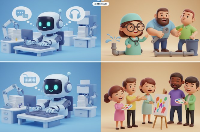 Dengan kata lain, karyawan di bidang kreatif, komunikasi, dan administrasi perlu lebih adaptif dalam berkolaborasi dengan AI ketimbang menganggapnya sebagai kompetitor.