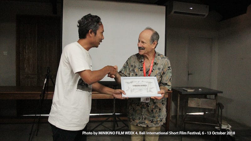 “Saya bertemu dengan Cika di SXSW Austin awal tahun ini dan ketika mendengar cerita tentang Minikino Film Week, saya tertarik dan coba masukkan film saya, KIMCHI untuk ikut seleksi. Ternyata terpilih dan bahkan bisa datang langsung ke festival ini serta menang penghargaan. Terima kasih juga buat para sukarelawan yang membuat festival ini benar-benar luar biasa. Terimakasih banyak!” ucap Jackson Segars (USA) yang menghadiri Malam Penganugerahan Internasional MINIKINO FILM WEEK 4.